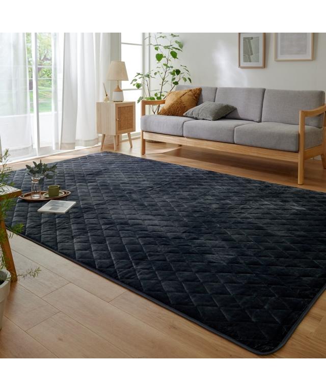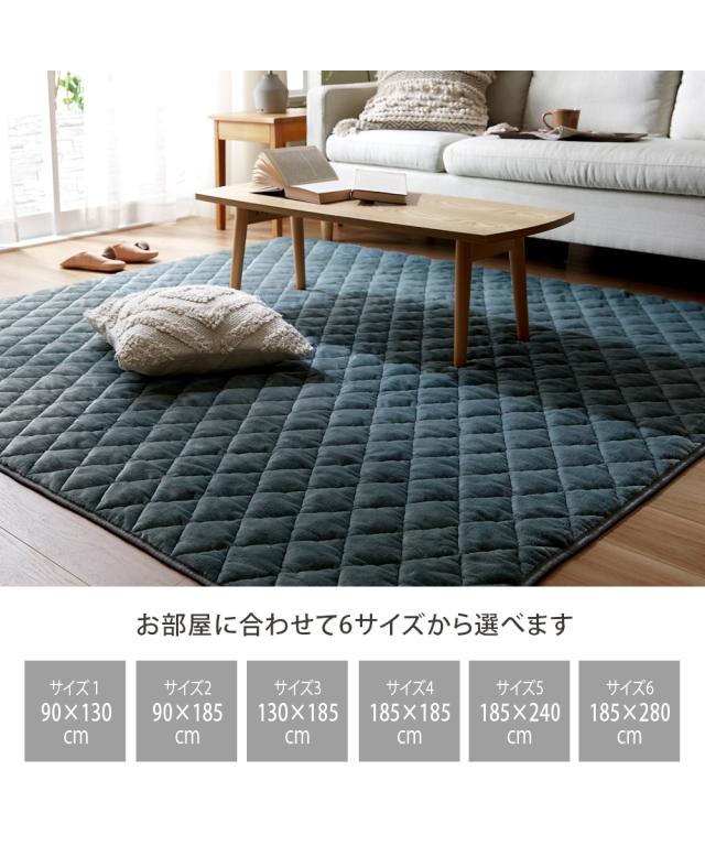 品質:表面=ポリエステル100%、中材=ポリエステル100%、裏面=不織布(滑りにくい加工付)※ホットカーペットカバーにもご使用できます。