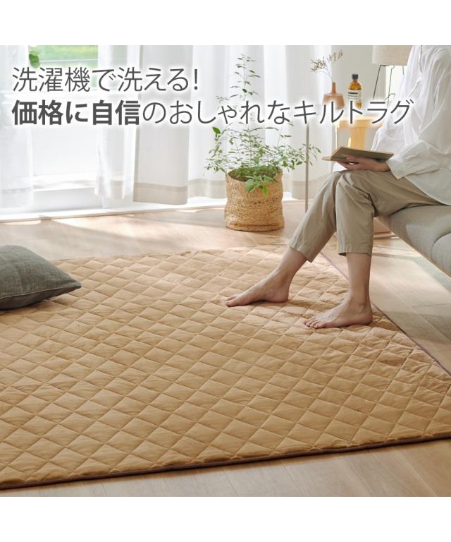 ラグ 洗える キルト おしゃれ かわいい 北欧 カーペット ラグマット ラグカーペット ホットカーペット対応 滑りにくい 洗濯機OK ふんわり グリーン ベージュ ピンク ブラウン 約130×185cm 厚さ5mm ニッセン nissen