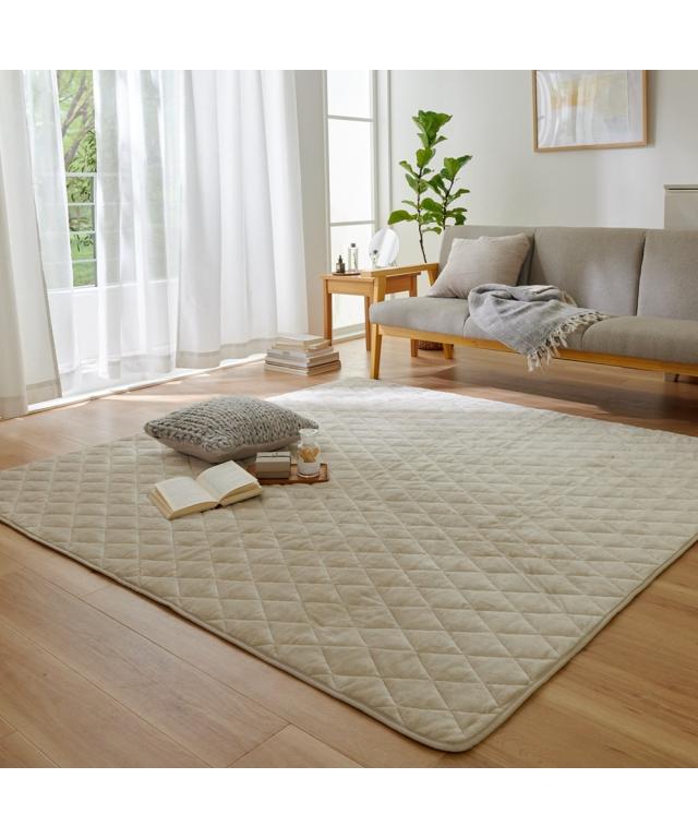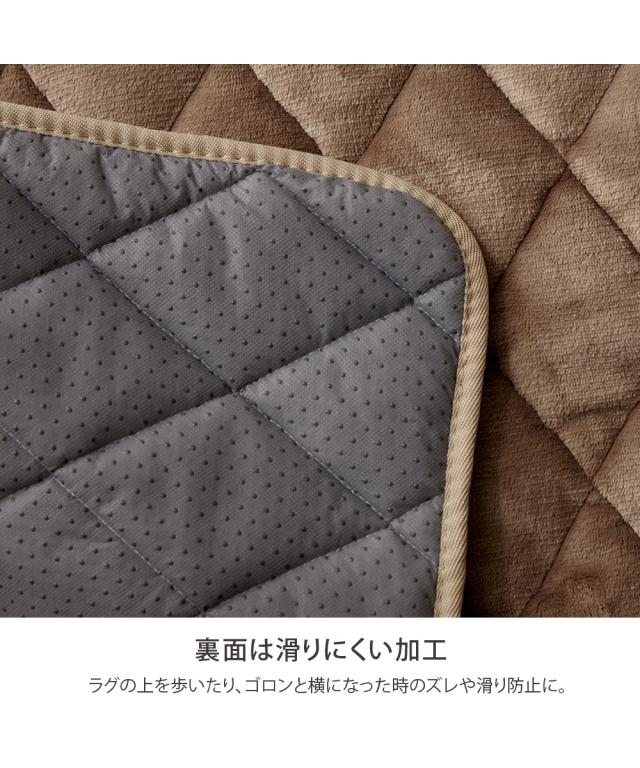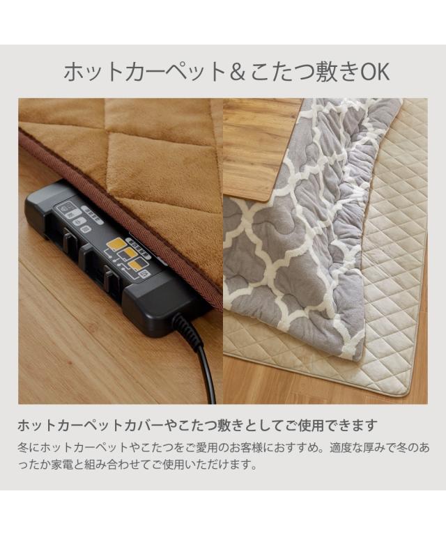 品質:表面=ポリエステル100%、中材=ポリエステル100%、裏面=不織布(滑りにくい加工付)※ホットカーペットカバーにもご使用できます。