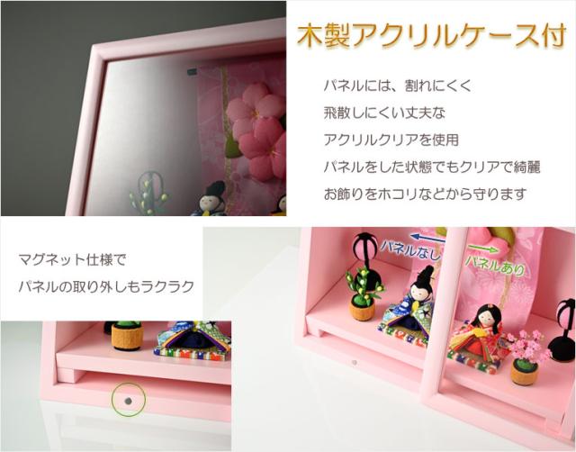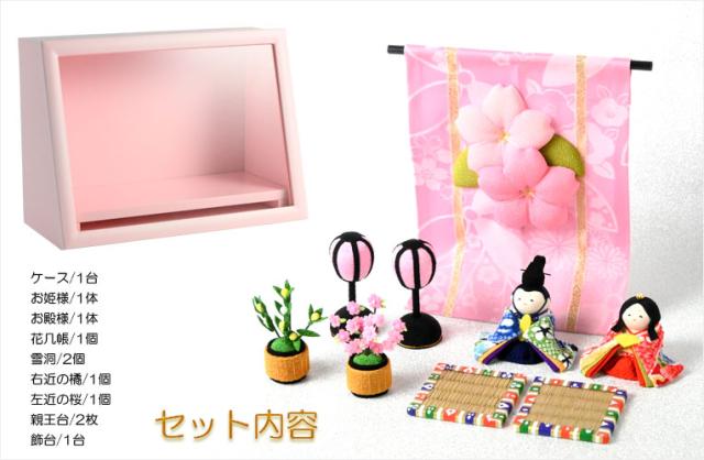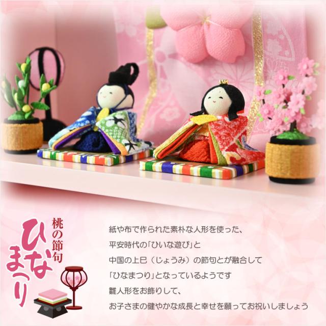 ひな祭り【国産京都 コンパクト収納飾り:木製ケース入り ちりめん雛人形・陽菜(HINA)パステルピンク】送料無料 ひなまつり 雛祭り 桃の節句 上巳 雛人形 ひな人形 ひな飾り お雛さま お姫様