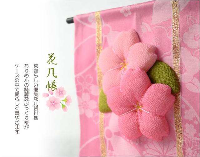 几帳には、愛らしいちりめんのぷっくり桜が優雅に咲き誇ります