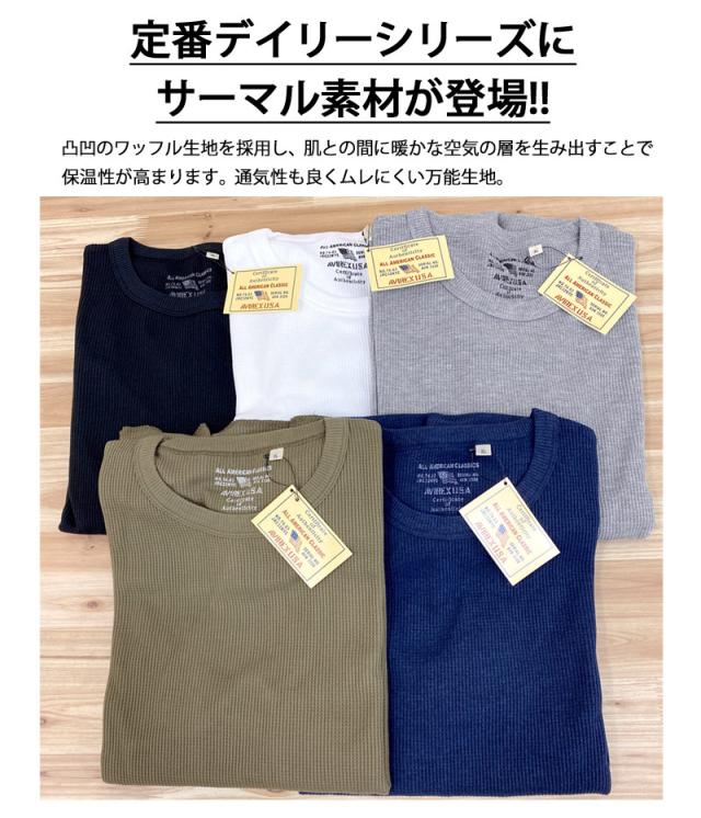 AVIREX アビレックス 新作 ロンT メンズ Tシャツ 長袖 サーマル クルーネック 無地 ロングTシャツ 長袖カットソー デイリーウェア ゆうパケ