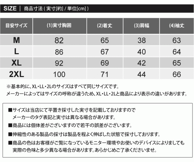メーカーによってはサイズの呼称が違うため、LL・XL・2Lと商品により表示の違いがあります。