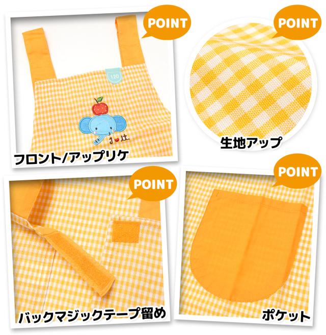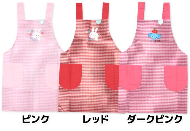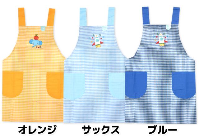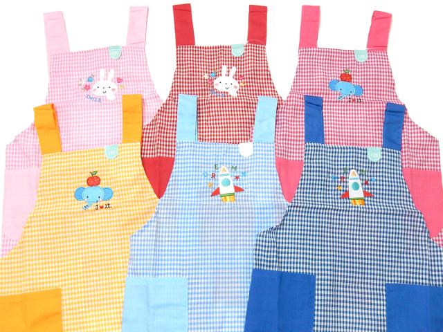 【送料無料】男児 女児 キッズ H型 エプロン ギンガムチェック柄 配色切替 刺繍アップリケ うさぎ ゾウ ロケット 子供 男の子 女の子 110cm 120cm 130cm yg-1002【メール便対応】