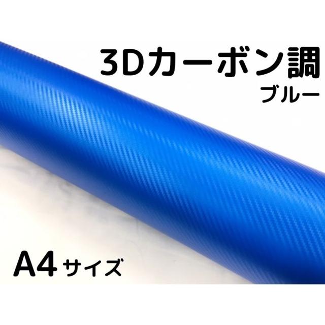 3Dカーボンシート A4サイズ ブルー カーラッピングシートフィルム 耐熱耐水曲面対応裏溝付 カッティングシート