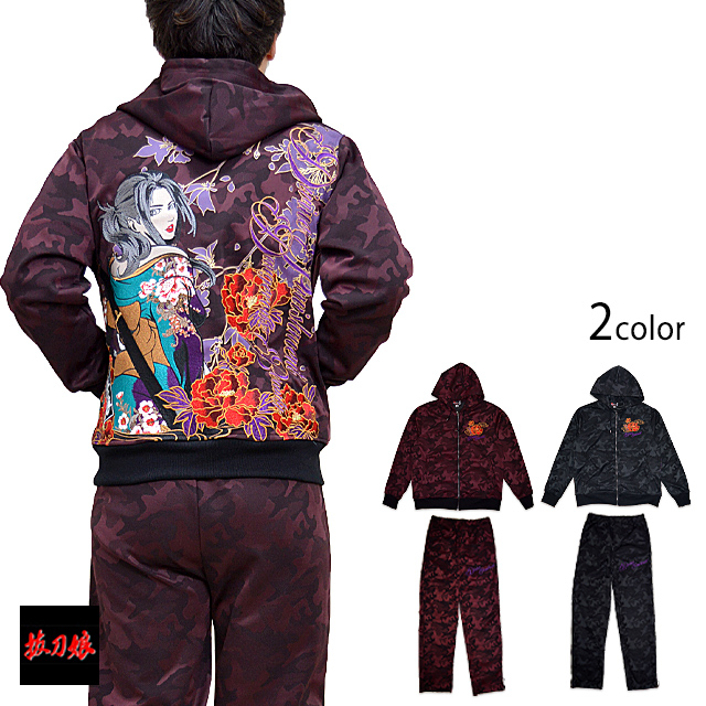抜刀娘 穂乃花セットアップ 抜刀娘 221068 和柄 和風 刺繍 迷彩 カモフラージュ 上下 花魁