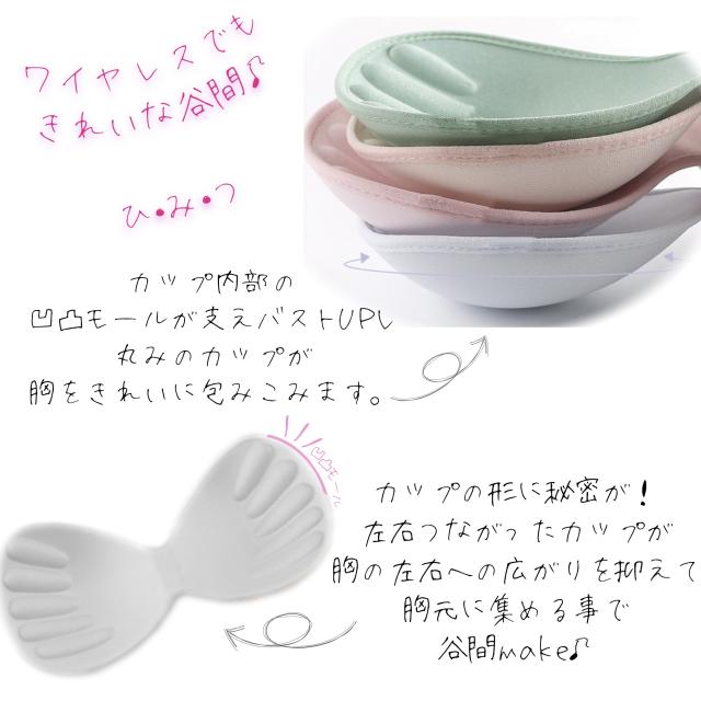 左右につながったカップの形も特徴的で、胸が左右に流れるのを防ぎます。