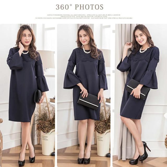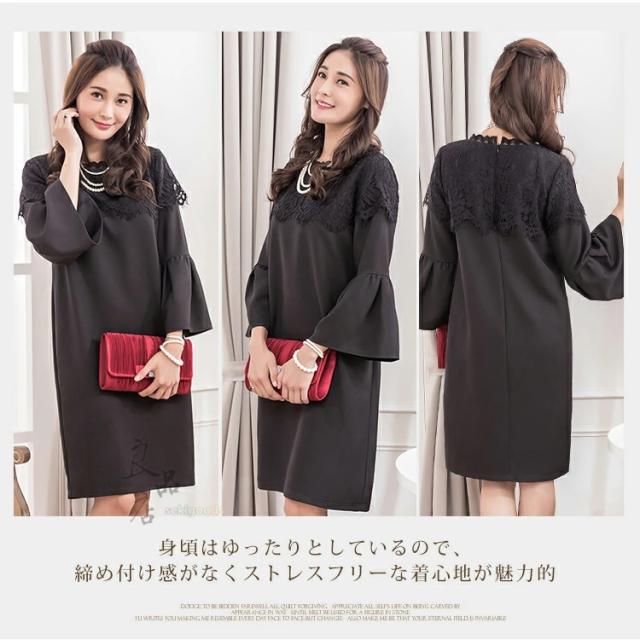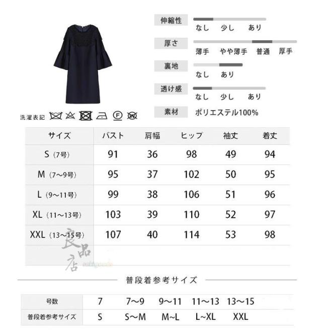 ワンピース レディース フォーマル 入学式 入園式 卒業式 パーティードレス 黒 ネイビー 膝丈 S M L XL XXL 結婚式 披露宴 デート 食事会 二次会 演奏会 体型カバー