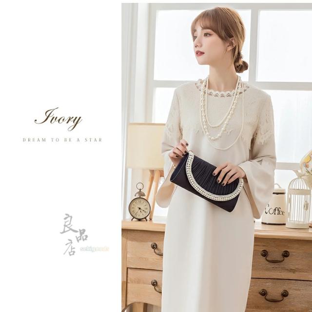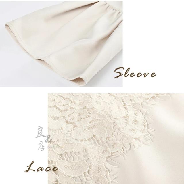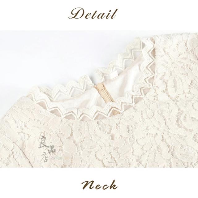 胸元のレースがフェミニンな大人ワンピース。