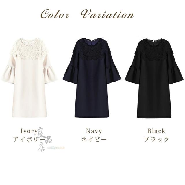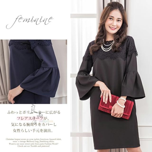 ワンピース レディース フォーマル 入学式 入園式 卒業式 パーティードレス 黒 ネイビー 膝丈 S M L XL XXL 結婚式 披露宴 デート 食事会 二次会 演奏会