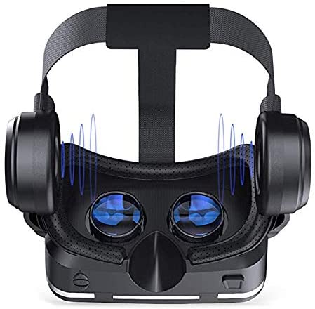 VRゴーグル 3D VRヘッドセット iPhone androidスマホ用 VRヘッドマウントディスプレ ヘッドホン一体型 3D VRグラス メガネ 非球面光学レンズ 120°広視野角 着け心地よい 近視適用 コントローラ付 4.7-6.0インチのスマホ対応,Google Cardboardで動作