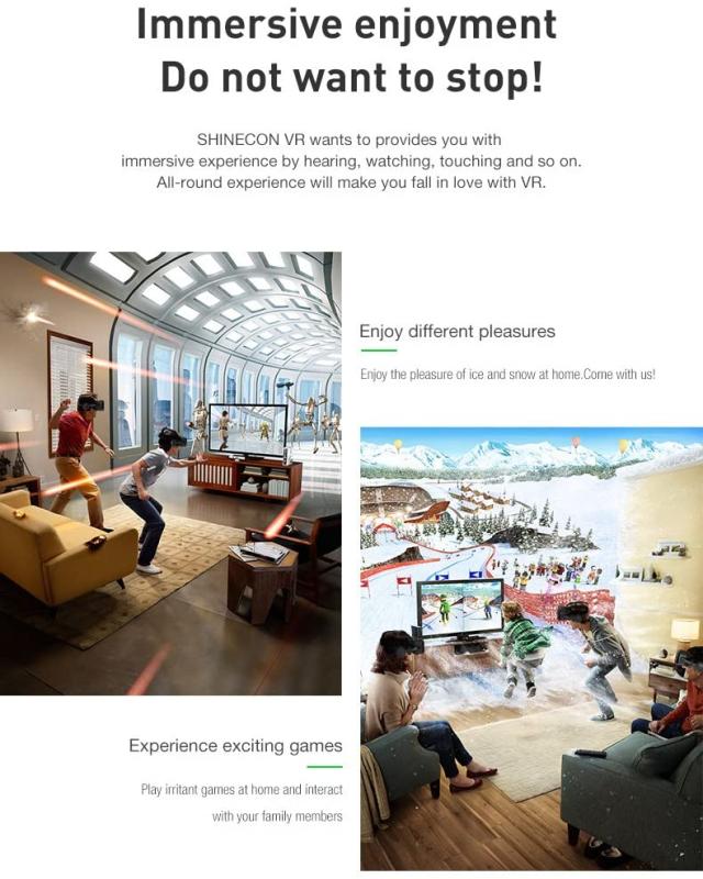 特別機能:取り外し可能な吸収パネル、独立したレンズ調整、調節可能な機能を備えたPUレザーの快適で通気性のあるヘッドセットマスク、没入型360度の大きな表示、設定が簡単な多機能の人間化デザイン。