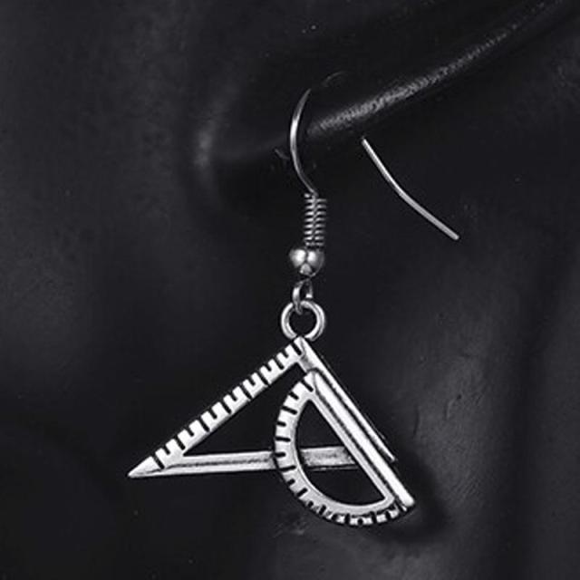 三角定規と分度器 ステンレスピアス/1個販売 片耳分 サージカルステンレス316L メンズ レディース 揺れる フックピアス チャーム 20G 20ゲージ ファッションピアス 20g 人気 男性 女性 プレゼント ギフト おもしろい シルバー 銀色 文房具 物差し モノサシ 定規 算数 先生