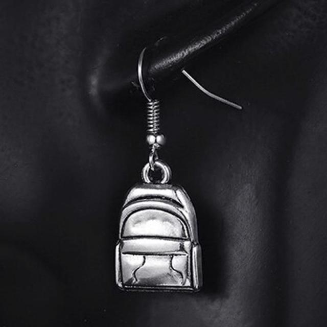 リュックサックをモチーフにしたチャーム揺れるフックタイプのステンレスピアス。