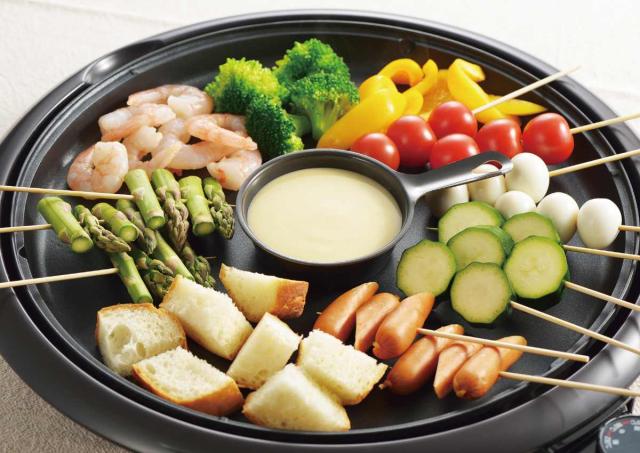 調理して溶かしたアツアツのチーズをホットプレートにのせてチーズフォンデュが手軽に楽しめます。