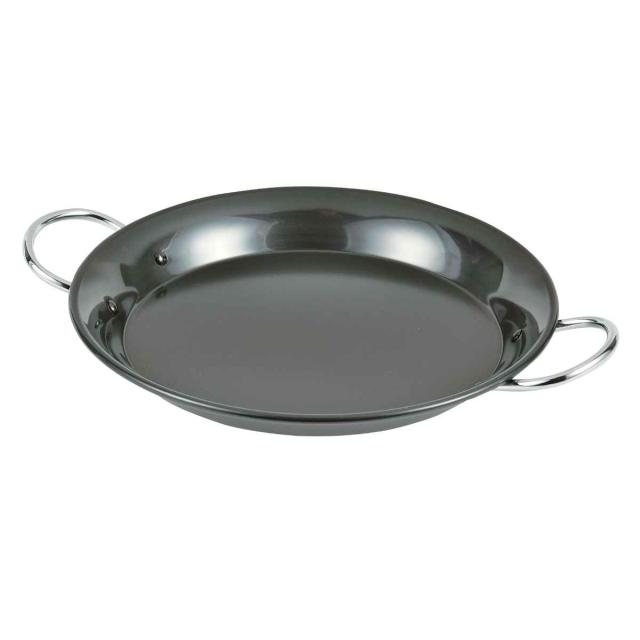 直径約27cmの鉄製ラウンドパンです。ガス火、IH、魚焼きグリル、オーブンなどオール熱源対応です。熱伝導率が良いので短時間で美味しく調理できます。