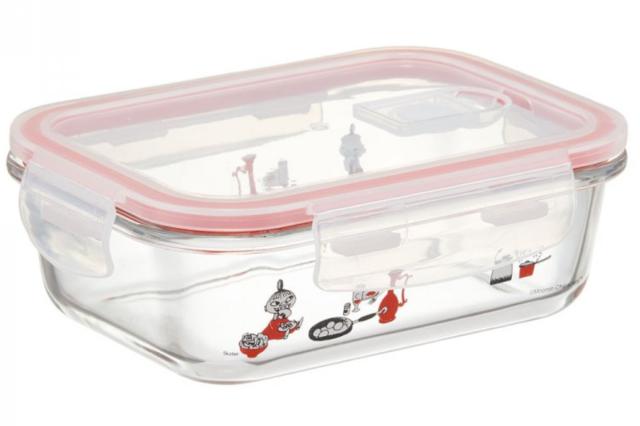 ●ムーミンシリーズの耐熱ガラス製4面ロック保存容器です。