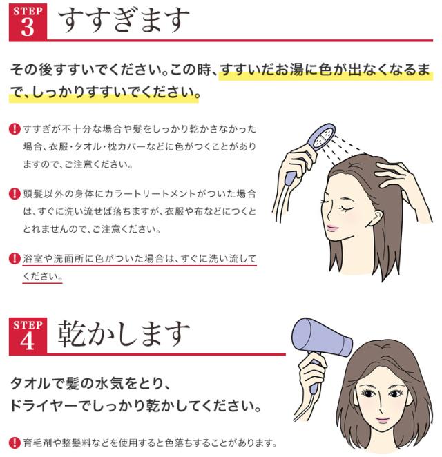 ●自宅で簡単・手軽に、白髪をしっかり色濃く、髪色に染める*ことができるカラートリートメントです。* 髪の表面を着色すること。
