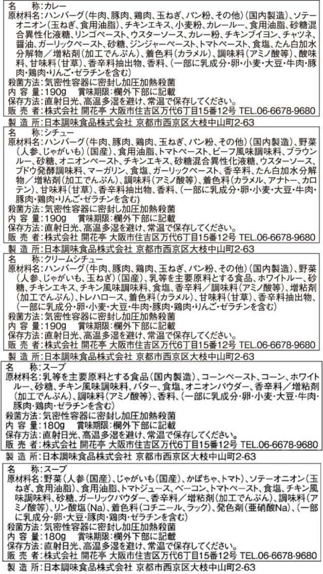 | 変更後 | カレーハンバーグ 190g シチューハンバーグ 190g クリームシチューハンバーグ 190g |