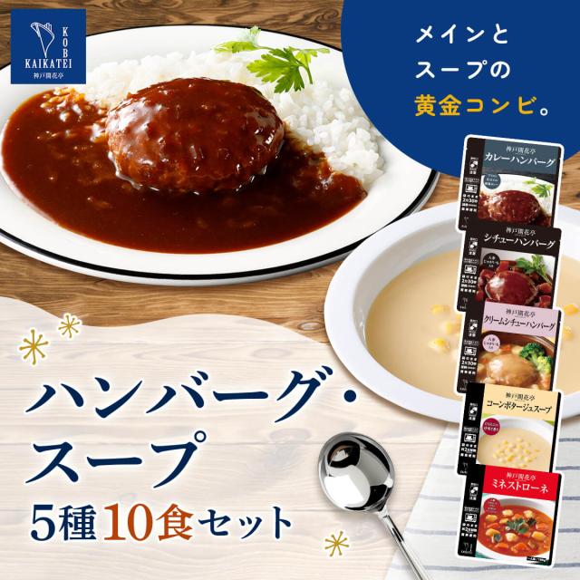母の日 レトルト 食品 惣菜 おかず ハンバーグ スープ 5種10食 詰め合わせ セット 【 送料無料 沖縄以外】 神戸開花亭 レトルト食品 洋風 お惣菜 レンジ 対応 パウチ 一人暮らし 仕送り プレゼント 贈り物 備蓄 2026 新生活 内祝い ギフト