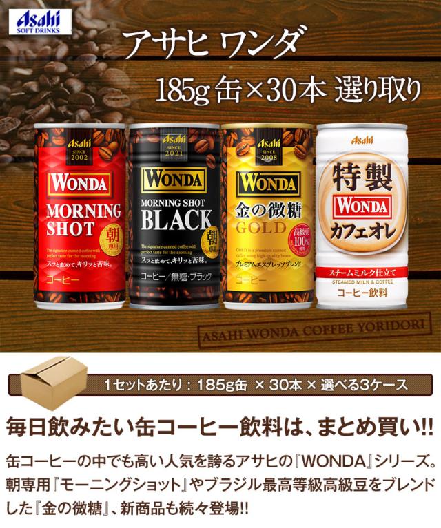 【4〜5営業日以内に出荷】アサヒ ワンダ コーヒー缶飲料 185g缶×90本[30本×3箱] 選り取り[賞味期限:4ヶ月以上][送料無料]
