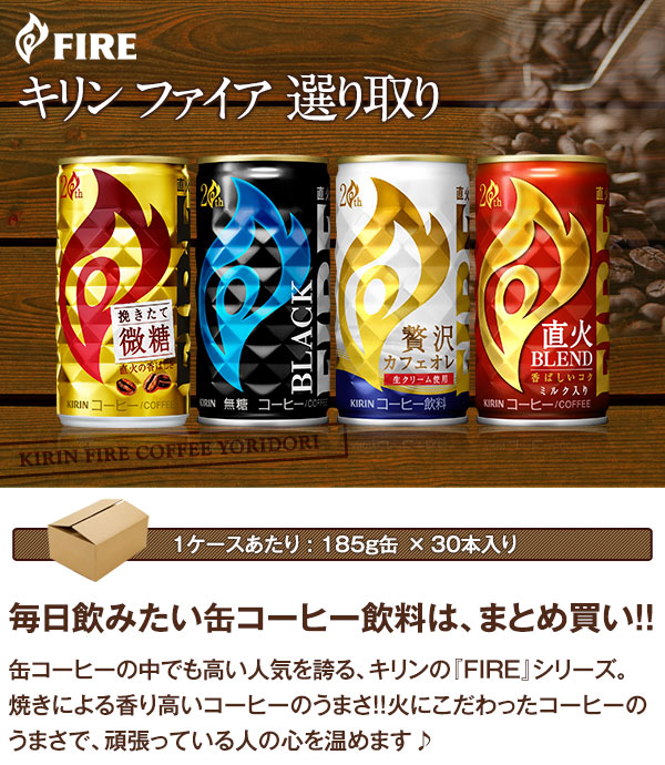 キリン FIRE ファイア 缶コーヒー[微糖・ブラック・カフェオレ・ブレンド]185g缶×90本[30本×3ケース] 選り取り【4〜5営業日以内に出荷】【送料無料】缶コーヒー コーヒー 珈琲 無糖 BLACK 直火 ロースト ミルク