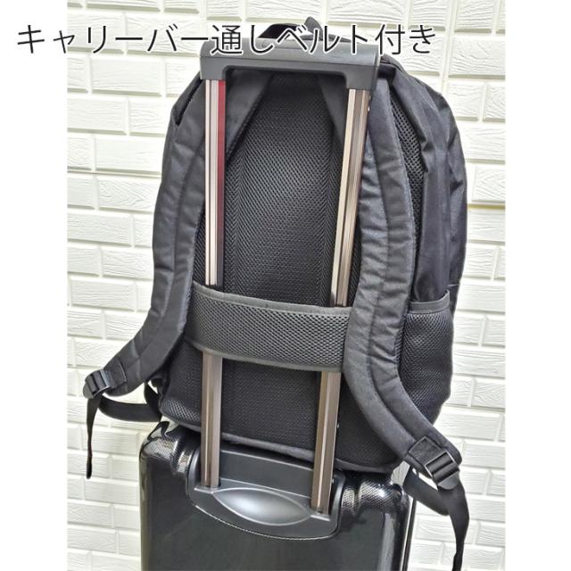 スーツケースなどの取手部分にキャリーオンできるベルト付き。