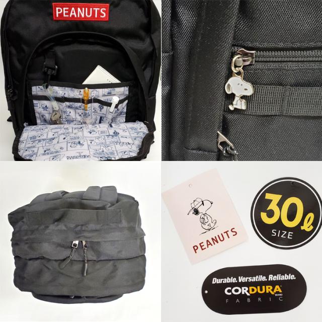 30L スヌーピー リュック スヌーピーリュック SNOOPY 正規品 ママバッグ マザーズバッグ マザーズリュック 学童リュック 大容量 バックパック 2層 ノートパソコン 15.6インチ パソコン PC タブレット クッションポケット キャリーオン PEANUTS 通勤 通学 黒 ブラック 軽量
