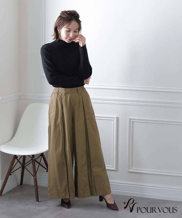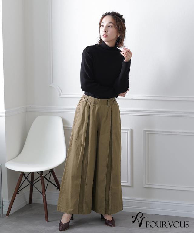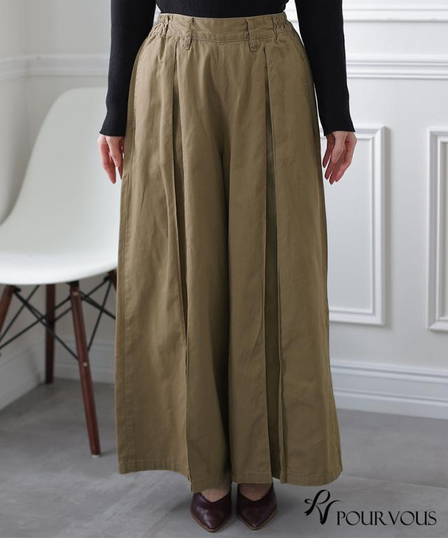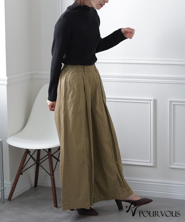 783211926 ワイドパンツ ガウチョパンツ レディース スカンツ きれいめ スカーチョ 秋冬 ゆったり オフィスカジュアル フレアパンツ 大きいサイズ レディースファッション パンツ 秋 ボトムス 大人の楽ちん おしゃれ 通勤 オールシーズン ウエストゴム 綿100% タックパンツ