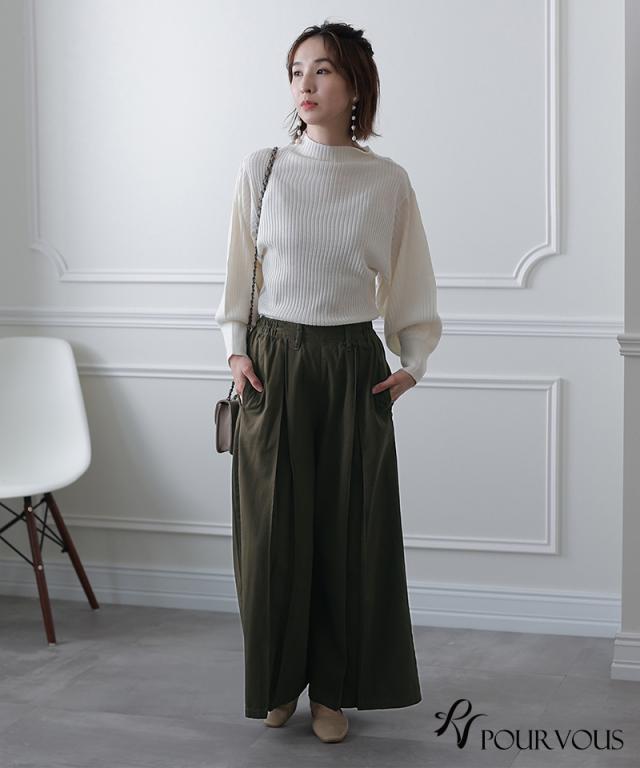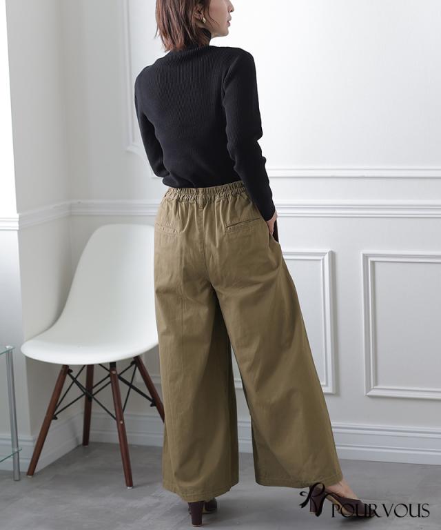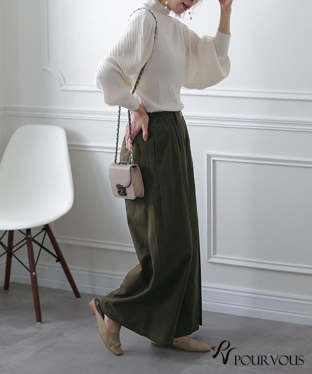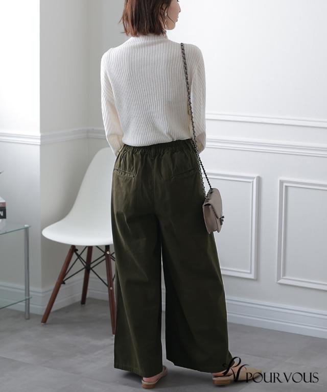 ワイドパンツは下半身のシルエットが気になる方にもおすすめです。ウエストにゴムが入っているので、気軽に着用できます。