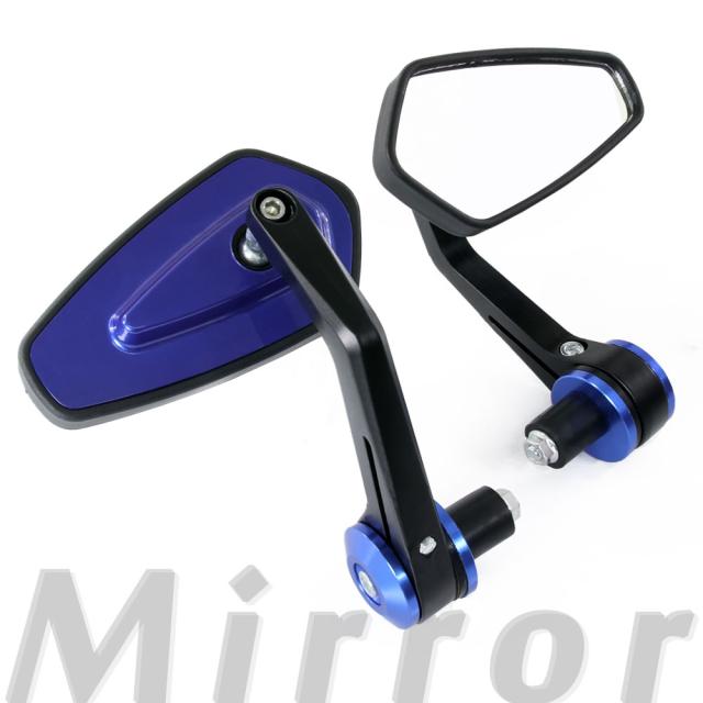 汎用 スリムバーエンドミラー ポリゴンタイプ ブルー マットブラック 左右セット バイク バイクミラー オートバイ ミラー カスタム パーツ バーエンド ストリート 交換 補修 角度調整 艶消し 平面鏡面 ポリゴン 2個 オーバル スクエア 360度 ステンレス