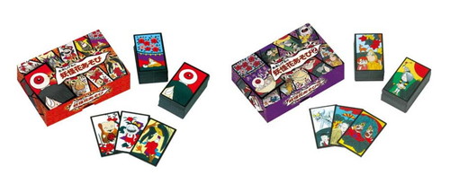 「妖怪花あそび」は花札の絵柄にあった妖怪をデザインした新しい花札です。登場する妖怪は史上最高の妖怪絵師・水木しげる大先生が生みだしたもの。花札として遊べるほか、「風雲!妖怪城」「うすのろお化け」など、オリジナルゲームも楽しめます。特別札「旅姿鬼太郎」が付属します。
