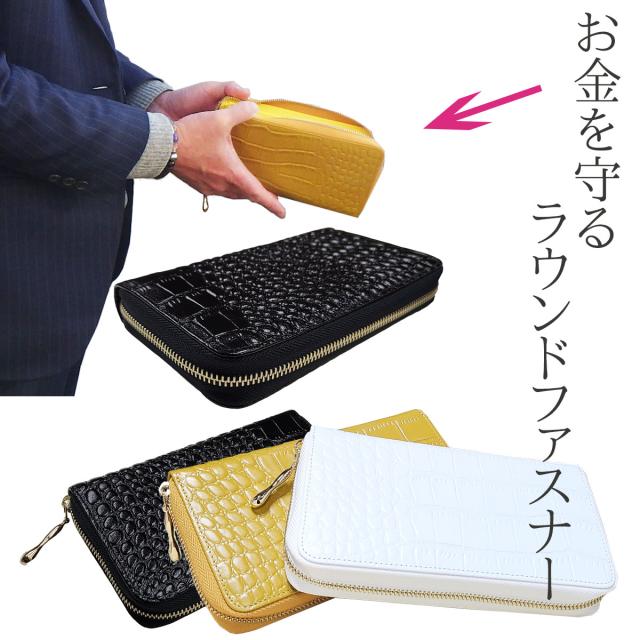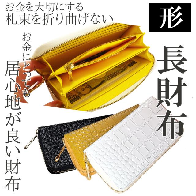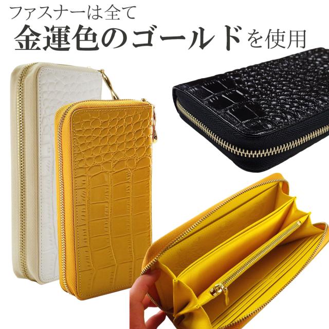 風水春財布 ギフト プレゼント 風水財布 金運祈願 クロコダイル長財布 色 黄色 白色 大きめ 財布 春財布 一粒万倍財布