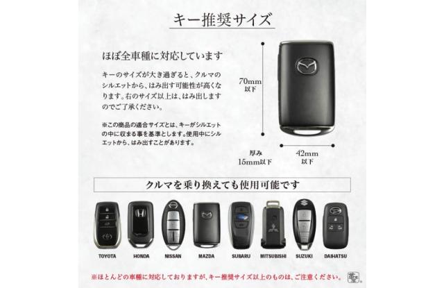 ほとんどの車種に対応しておりますが、キー推奨サイズ以上のものはご注意ください。