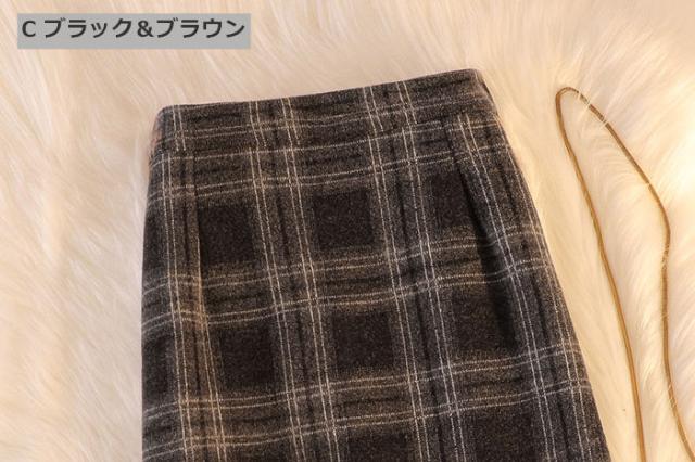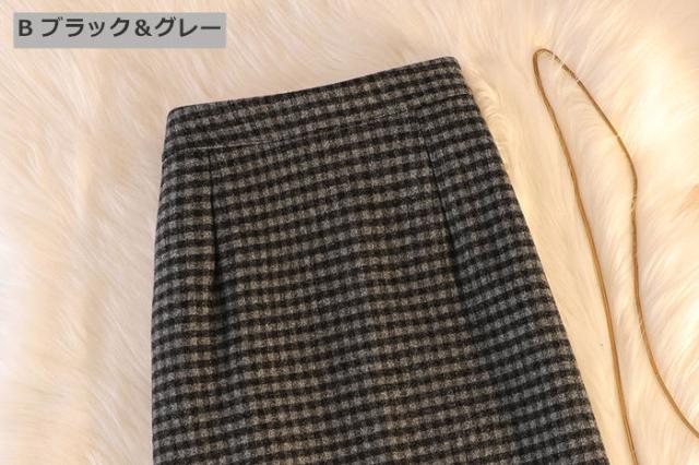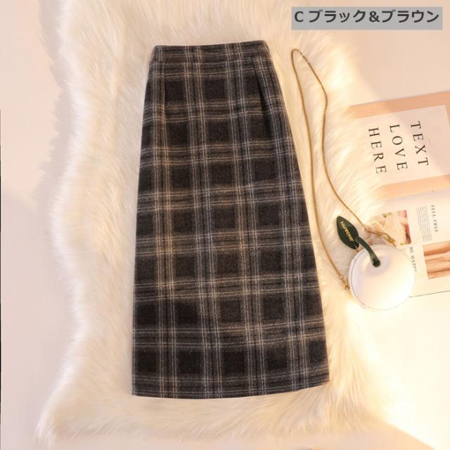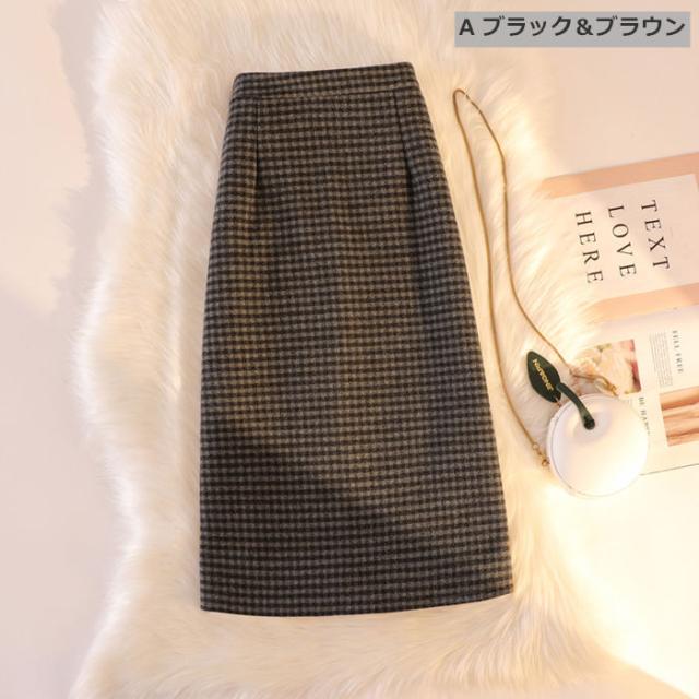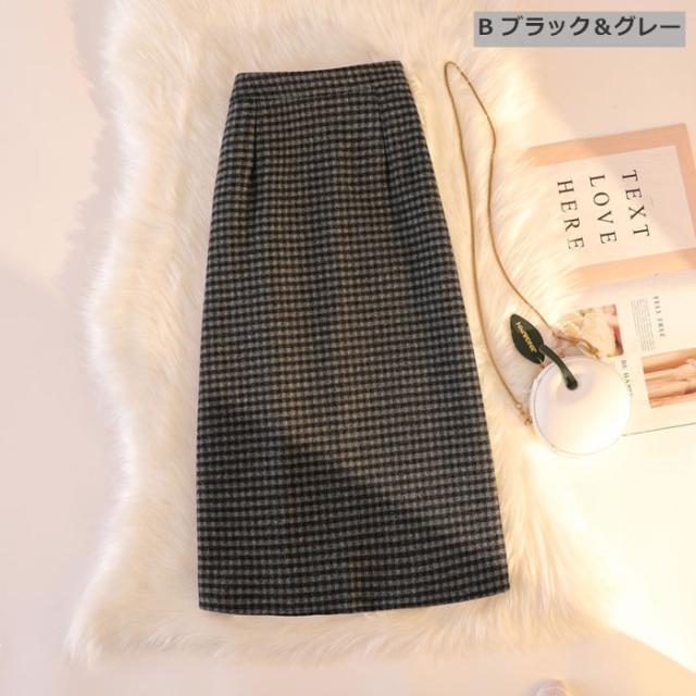 送料無料 レディース タイトスカート ロング丈 秋冬 ロング スカート タイト ペンシル タイトロングスカート チェックスカート グレンチェックスカート ウールスカート ペンシルスカート スリット 厚手 ウエストゴム グレンチェック チェック柄 大人 上品