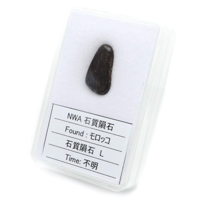 【発見地】モロッコ◆サイズ16 x 10mm 重量1.3g◆NWA石質隕石主にケイ酸塩から構成される隕石のことを指します。今までに落下が目撃された隕石のうち、多くがコンドライト、またはエイコンドライトという名の石質隕石であるとされています。石質隕石を構成するおもな鉱物は、橄欖石・輝石・斜長石・蛇紋石などの石を含むほか、少量の鉄、ニッケル合金とトロイライトなどです。