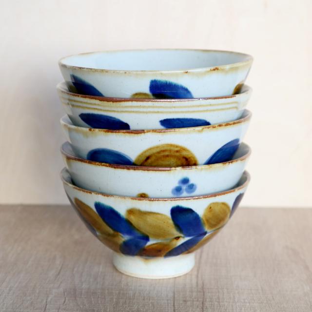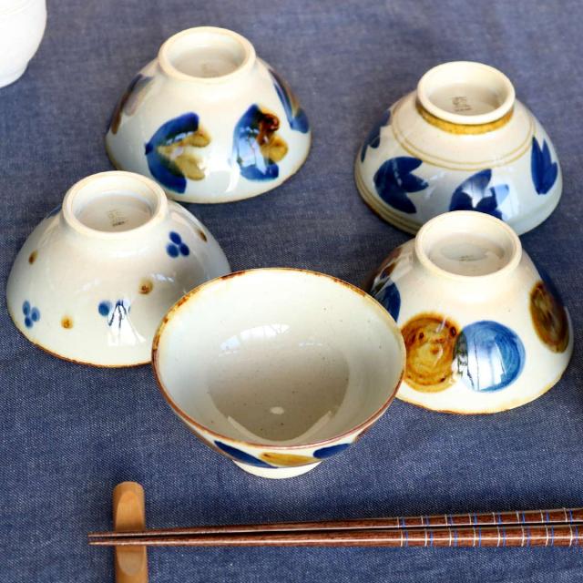 茶碗 11cm 藍 陶器 波佐見焼 ( 食洗機対応 電子レンジ対応 お茶碗 ご飯茶碗 茶わん 飯椀 ライスボウル 日本製 手書き 柄 和食 ごはん ご飯 民芸 軽い 軽量 小さめ 女性 レディース おしゃれ ちゃわん )