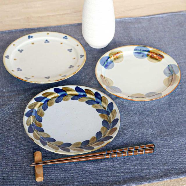土の質感がほっこりと優しいプレートです。一品料理や少し大き目の取り皿にもぴったりなサイズです。手描きで絵付けされたあたたかみのある風合いと、素地の優しい色合いがお料理を美味しそうにみせてくれます。日常使いにはもちろん、おもてなしや贈り物にもぴったりです。