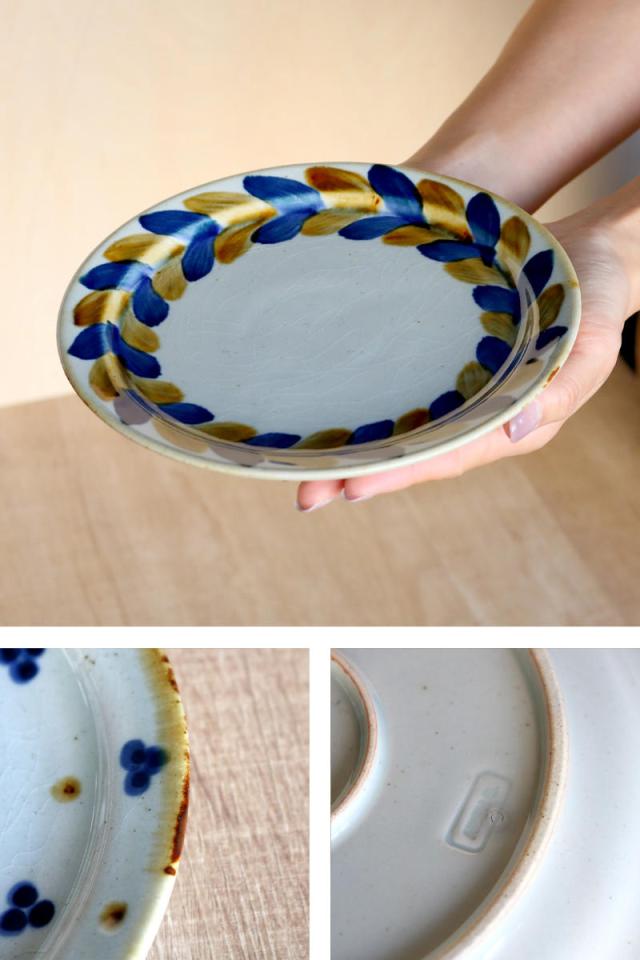 プレート 18.5cm 藍 陶器 波佐見焼 ( 食洗機対応 電子レンジ対応 皿 平皿 中皿 丸 取り皿 日本製 手書き 柄 民芸 お皿 和食 洋食 パン皿 デザート 取皿 おしゃれ かわいい 軽い 軽量 )