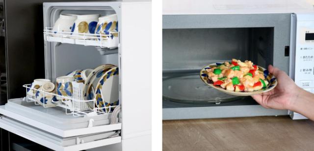 食器洗い乾燥機、電子レンジに対応しているので、毎日の後片付けや温め直しも簡単です。
