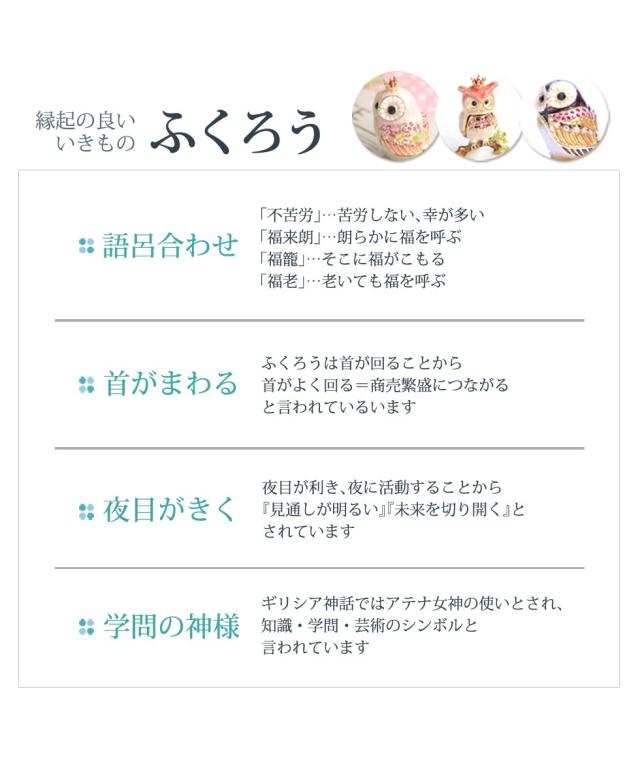 フクロウは「不苦労」と言われ、古くから多くの人々に愛されているモチーフ。