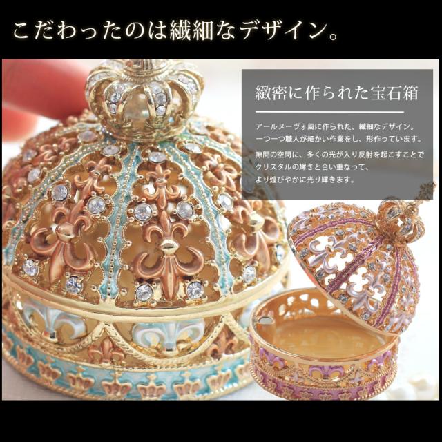 お洒落な王冠モチーフが人気のジュエリーボックスです。