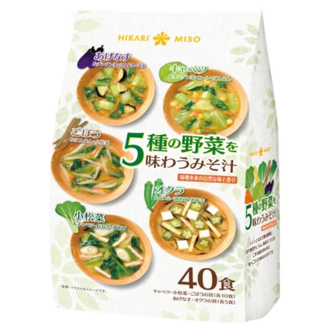5種の野菜を味わうみそ汁40食 5305 ひかり味噌 即席みそ汁 インスタントみそ汁 具沢山 野菜みそ汁 あげなすみそ汁 化学調味料不使用 バラエティ アソート カップみそ汁 大容量