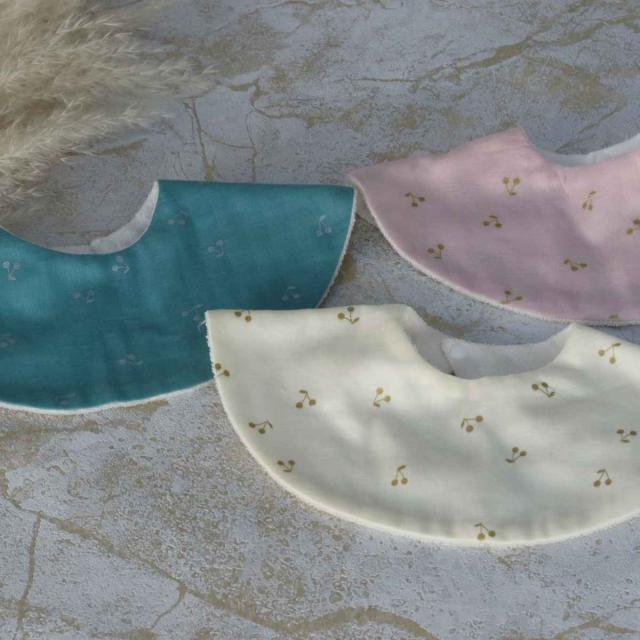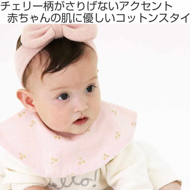 スタイ Lien de famille チェリー 日本製 女の子 出産祝い おしゃれ ( よだれかけ ベビースタイ 前掛け エプロン 綿 赤ちゃん プレゼント 男の子 ベビーエプロン お食事エプロン 360度 ベビー かわいい )
