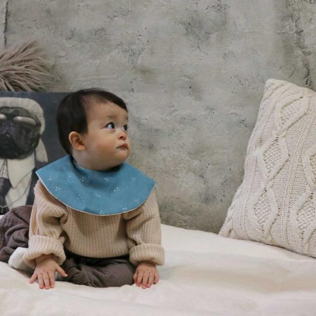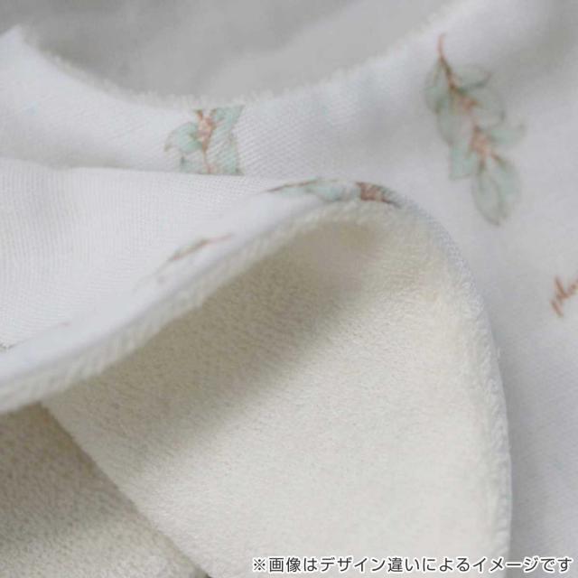 赤ちゃんの肌に直接触れる内側には、柔らかなコットン100%のパイル生地を使用しています。吸水性もよく、よだれを服まで通しにくい仕様です。夏は汗をよく吸い、冬は柔らかな肌触りで気持ちのいい生地です。