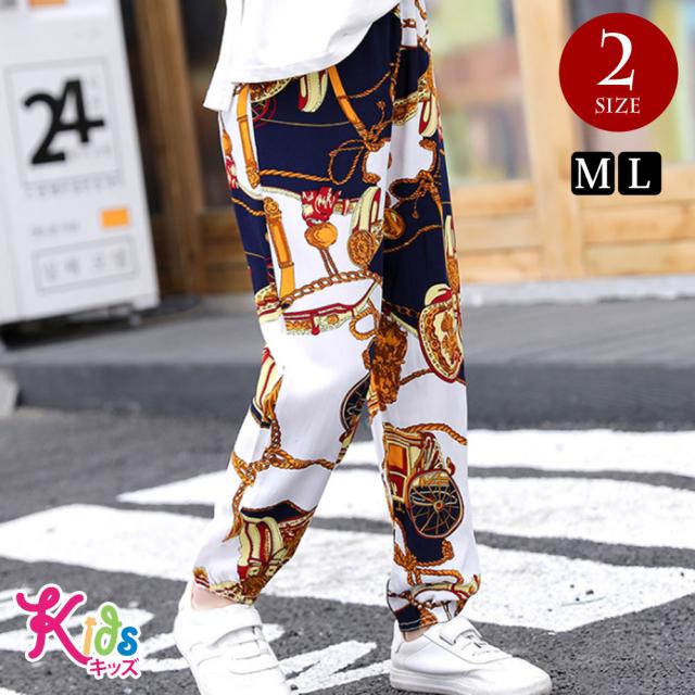 プリント デザイン ロング パンツ 子供服 ヒップホップ キッズ ダンス衣装 ステージ衣装 総柄 薄手 股上深め BC19K04[M便 1/3]