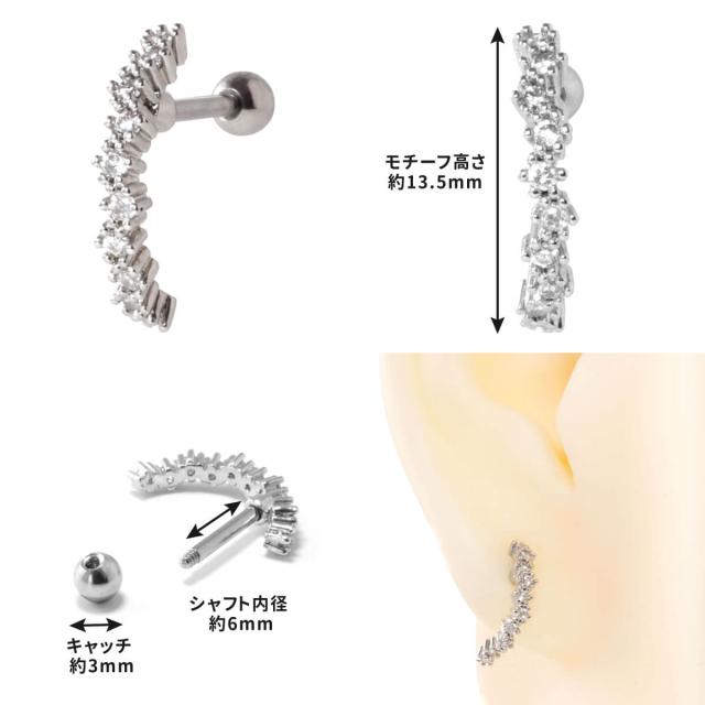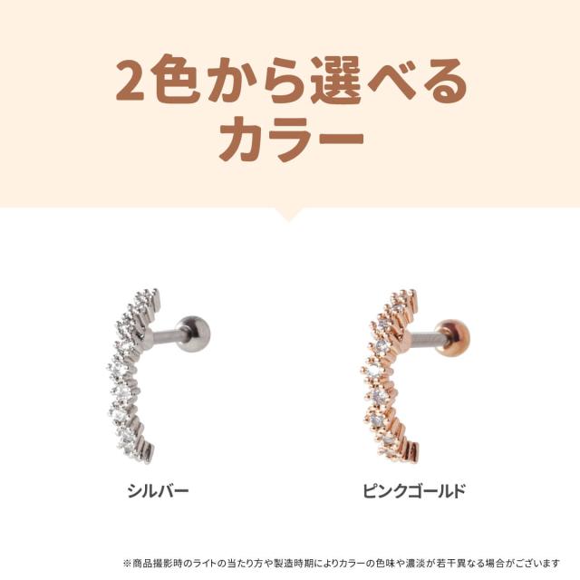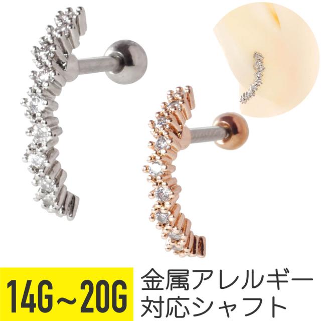 カーブ イヤーカフ風 ジュエル ストレートバーベル 14G 16G 18G 20G サージカルステンレス ジルコニア ジュエル シルバー ピンクゴールド イヤーロブ ヘリックス 軟骨ピアス ボディピアス CZ イヤーカフ