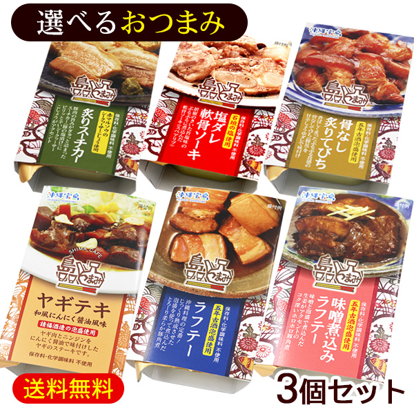 島つまみ 選べるおつまみ3個セット /軟骨ソーキ 炙りてびち 炙りスーチカー ラフテー ヤギテキ【M便】