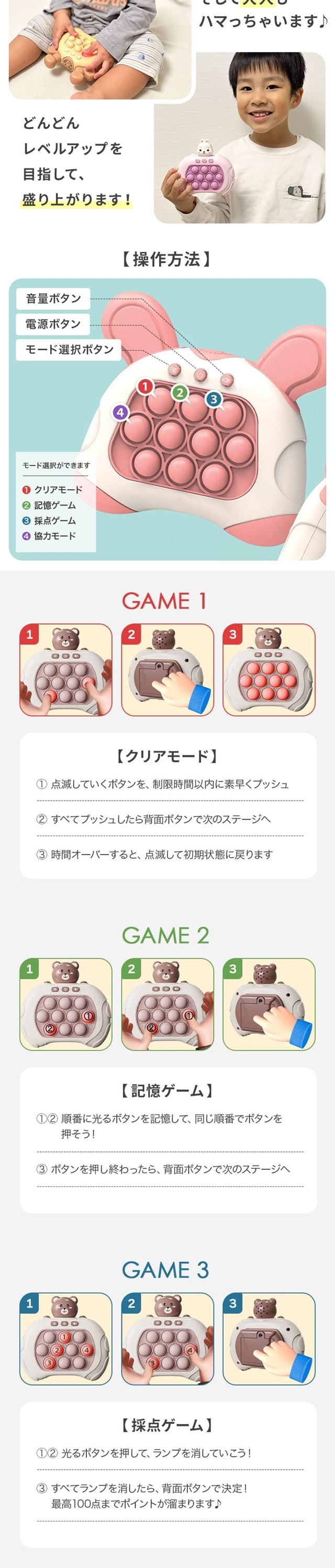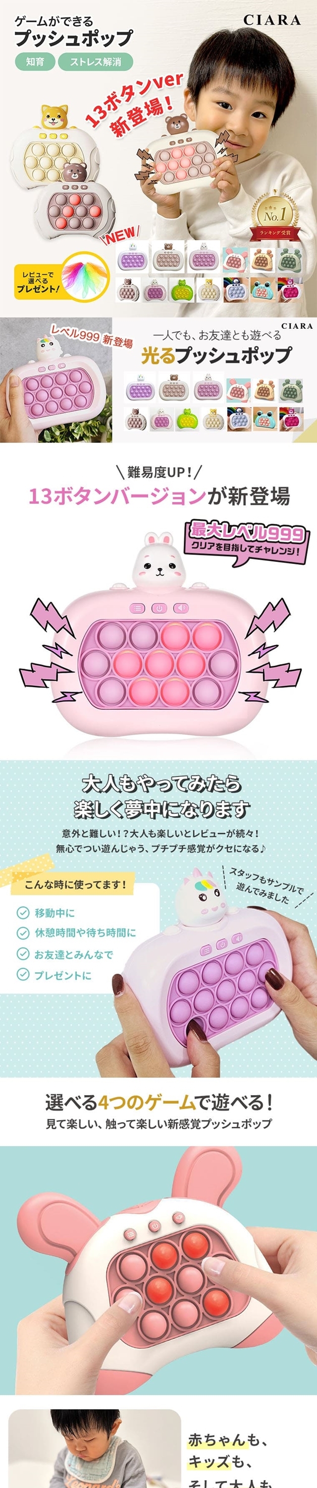 プッシュポップ 光る ゲーム 電動 知育 ストレス解消 プレゼント ギフト おもちゃ スクイーズ ポップイット 知育玩具 もぐらたたき ゲーム機 知育 知育おもちゃ 玩具 ぽちぽち ぽちぽちゲーム ボタン グッズ バブル プチプチ 幼稚園 保育園 子供会 子ども会 景品 お揃い 子供 子ども キッズ 音楽 クリスマス ホワイトデー お返し 新生活 男の子 女の子 男女兼用 ポイント消化 福袋 プレゼント プレゼント交換 プチプラ プチギフト かわいい 出産祝い 内祝い 誕生日 子どもの日 CIARAポーチ雑貨屋 セール 1月 2月 3月 4月 5月 6月 7月 8月 9月 10月 11月 12月 シアラ OEM 大量注文 ネスリーフ 2025 遅れてごめんね