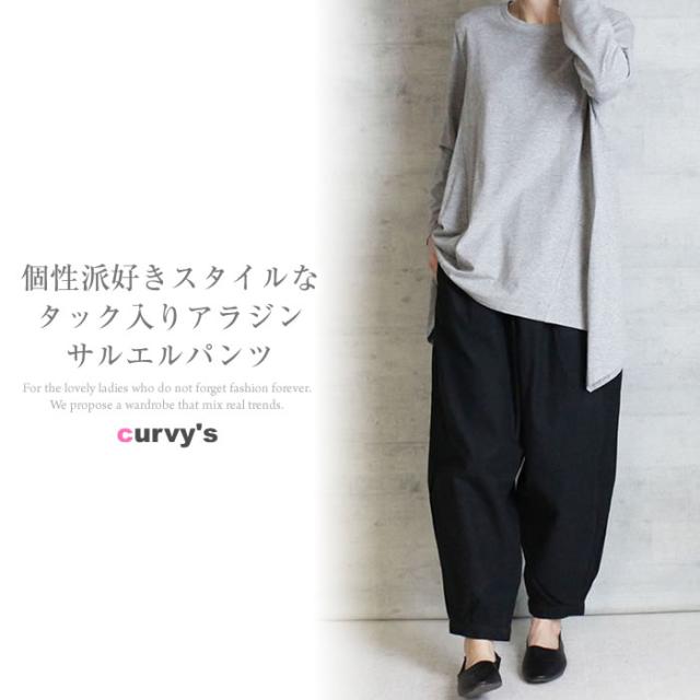 サルエルパンツ 宅配便配送 バルーンパンツ コットン100% カジュアル おしゃれ かわいい 大人 5営業日以内入荷 大きいサイズ レディース M L LL 3L 4LLARU ラルー タック入りアラジンパンツ
